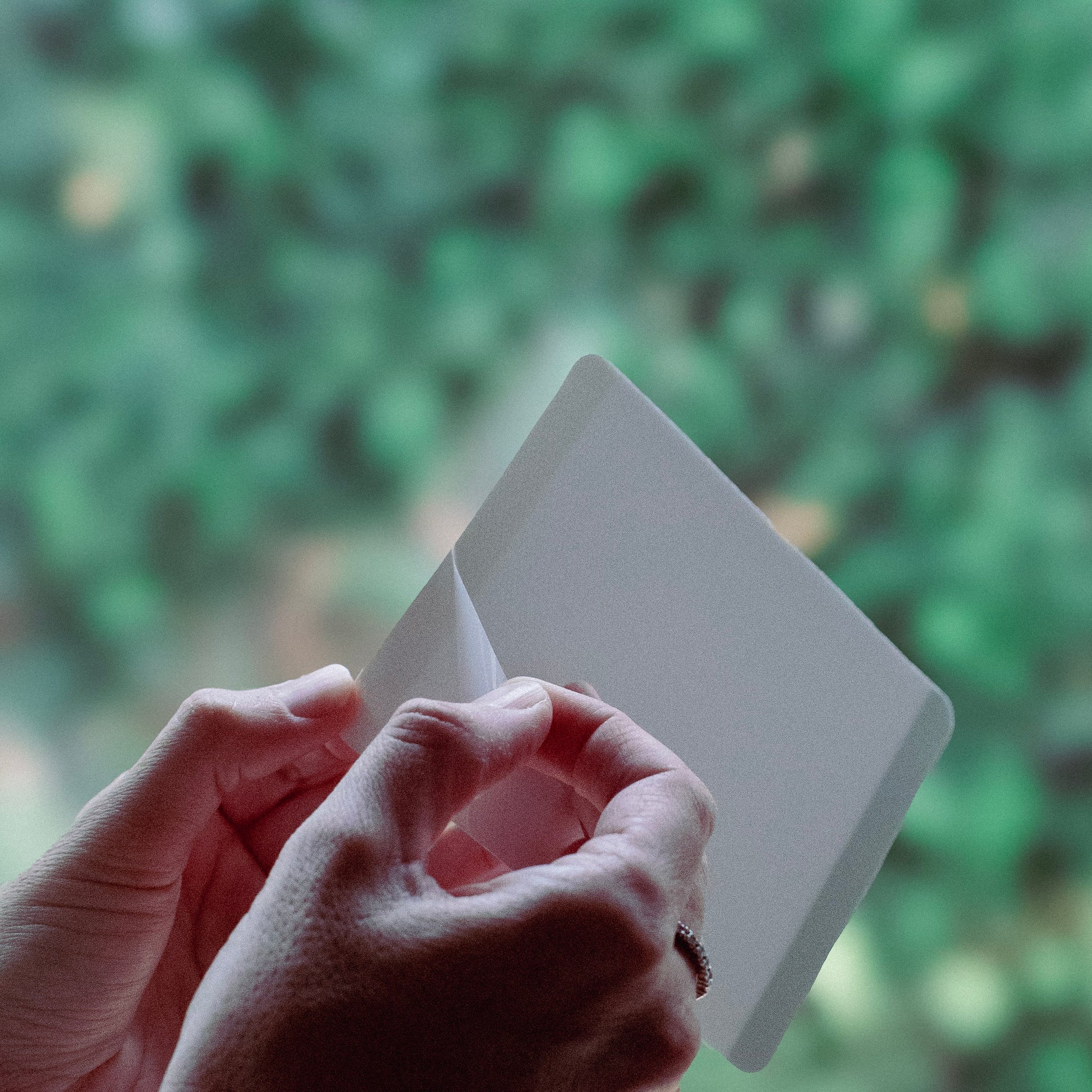 En el caso de la parte trasera, si se ensucia y pierde un poco su capacidad de pegarse, tan solo hay que limpiarla con agua y dejarla secar. Cuando se seque y esté limpia estará como nueva.