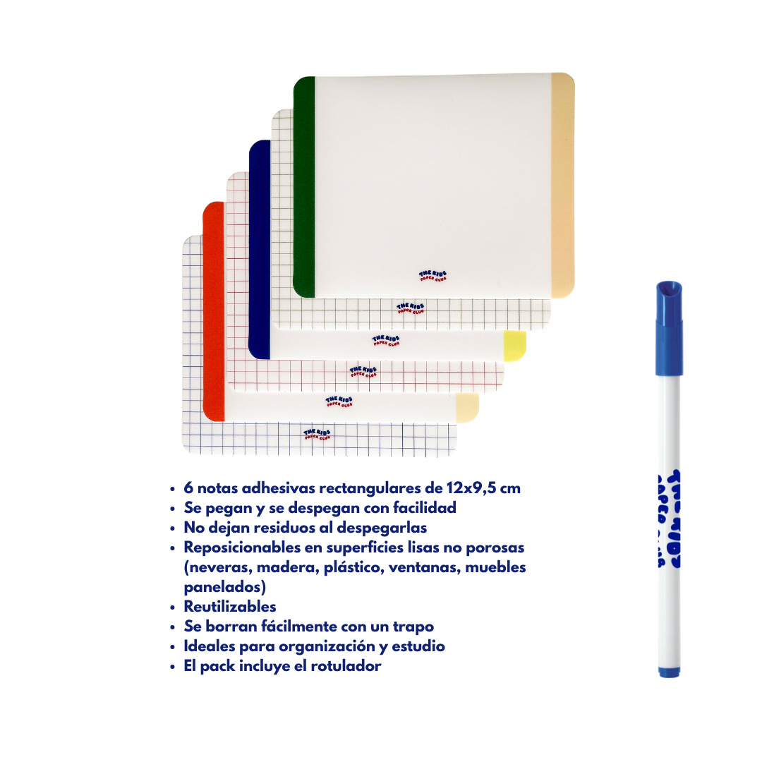 Todas son reutilizables, borrables y reposicionables, perfectas para usar una y otra vez. Se adhieren en superficies lisas sin dejar marcas, convirtiéndose en la herramienta ideal para casa, oficina, estudio o juegos.